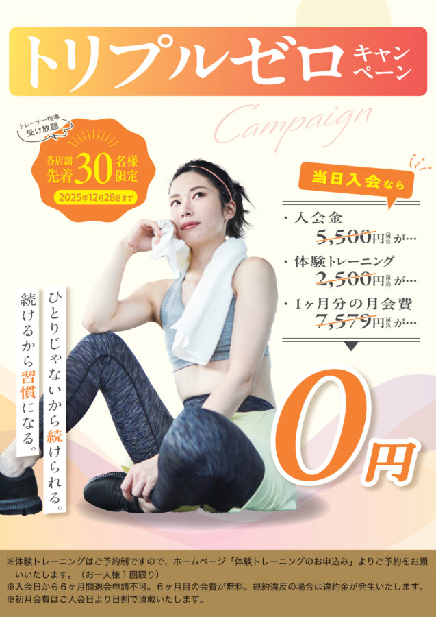 パーソナルトレーナーによるトレーニングメニューの相談やフォーム指導なども無料ですので、『運動を私の習慣に』する為のはじめの一歩にふさわしいトレーニングジムです。